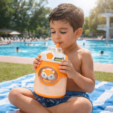 Ob beim Toben auf dem Spielplatz, beim konzentrierten Malen im Kindergarten oder bei der nächsten spannenden Entdeckungstour im Wald – diese Flasche ist immer an der Seite Ihres Kindes. Dank des praktischen Tragegurts sind die Hände frei für das nächste Abenteuer, während der auslaufsichere Verschluss dafür sorgt, dass im Rucksack alles trocken bleibt. Auch an entspannten Nachmittagen beim Chillen im Kinderzimmer oder beim sommerlichen Ausflug ins Schwimmbad ist die Flasche der ideale Begleiter: Sie hält das Lieblingsgetränk über Stunden erfrischend kühl und sorgt dank des bequemen Strohhalms für kleckerfreien Trinkspaß. Ganz egal, wo der Tag hinführt – mit ihrem individuellen Sticker-Design ist die Flasche überall ein echter Hingucker und erinnert spielerisch daran, über den Tag verteilt genug zu trinken.